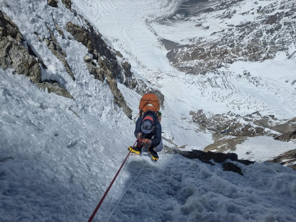 By 1 July, they made it to Camp 2 after a punishing 9-hour night climb up endless rock and hard ice. Allie described front-pointing hundreds of metres up the steep face as “extremely painful” but was relieved to tick off this critical stretch.